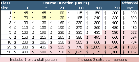 Bravo Technology Center Seminar Rates, effective 2/10/2001