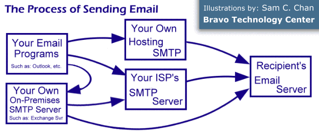 your out-bound messages to an SMTP server, which in turn performs all the rest behind the scene for you, and